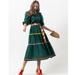 Cotton Broderie Anglaise Dress - Forest Green  - Vendor